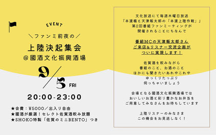 9月5日(金)、文化放送「本渡上陸作戦」ファンミーティング前夜イベント開催