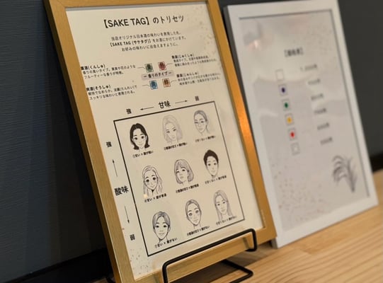 特製の"SAKE TAG"により、日本酒の甘味と酸味の強さから、味のタイプを表現しており、日本酒に詳しくない方にも選びやすい工夫がされております。