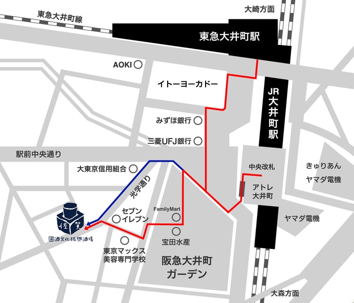 JR線 大井町駅からお越しのお客様(中央改札から店舗まで徒歩で約3分)